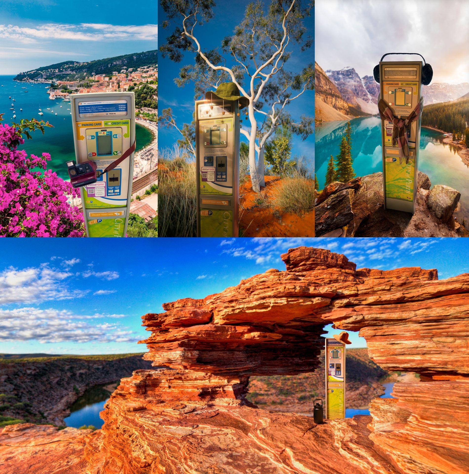 Our retirement images were created in collaboration with photographer and retoucher Luke Carter-Wilton, who seamlessly added a parking meter into various exotic scenes.